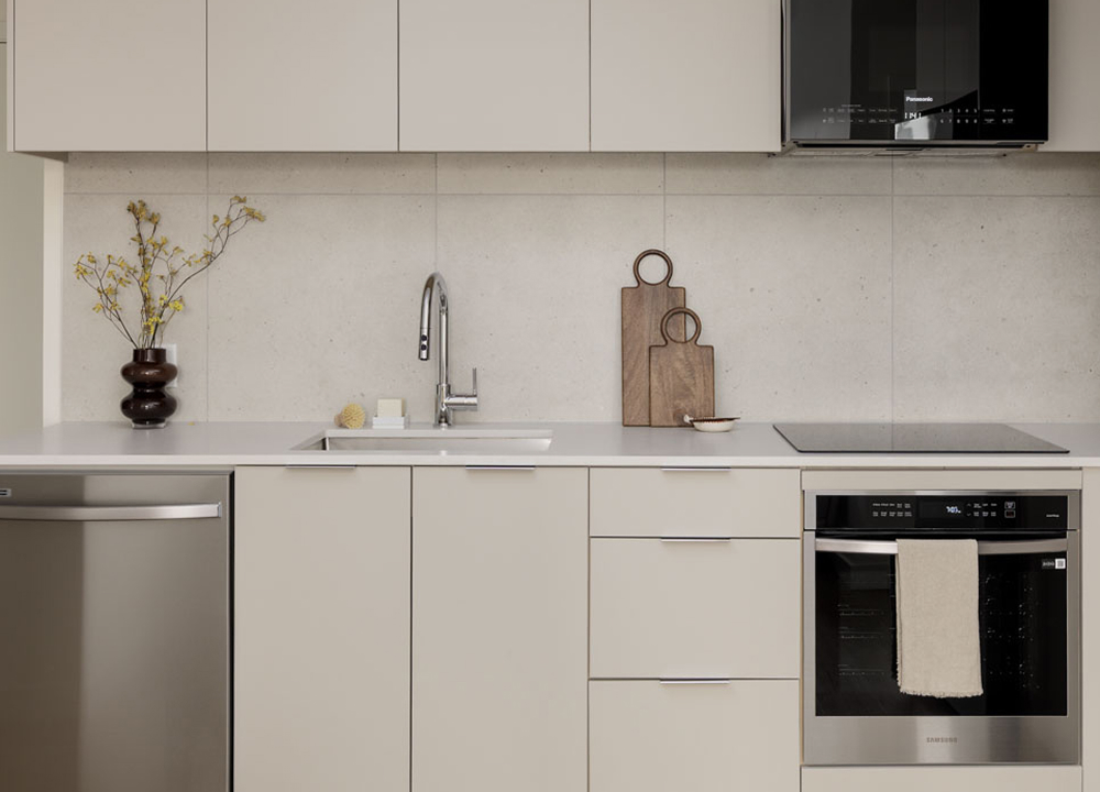 Homes at The Oxley feature modern industrial interiors with quality finishes that reflect the history of the neighbourhood.